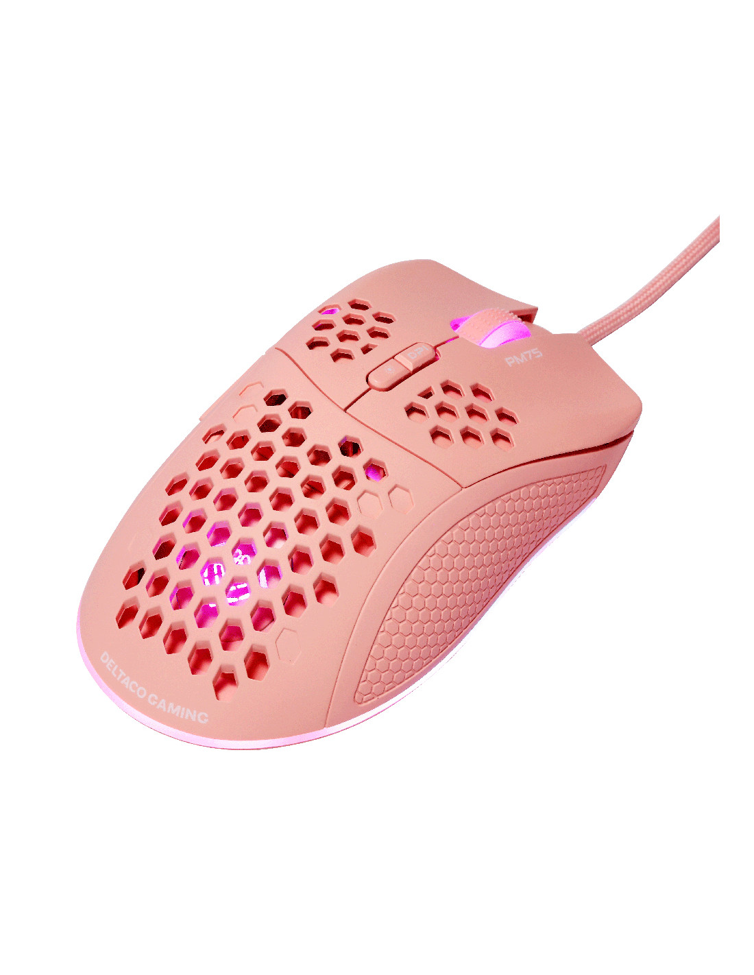 GAMING PM75 Ultralight Gaming Mouse, 6400 DPI, RGB, Rubber coated side grips, Pink