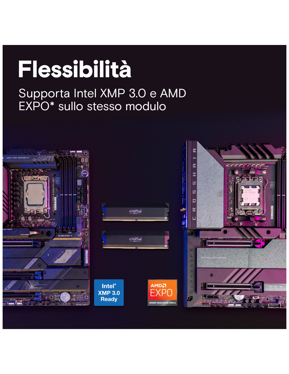 Supporta sullo stesso modulo sia Intel XMP 3.0 sia AMD EXPO™